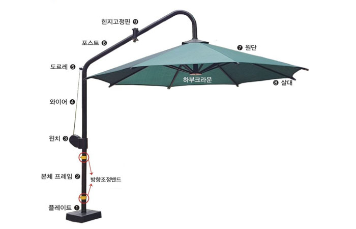 - 포스터에 고정된 살대(원단)을 잡고 포스트 상부가 완전히 펴지도록 돌려주세요